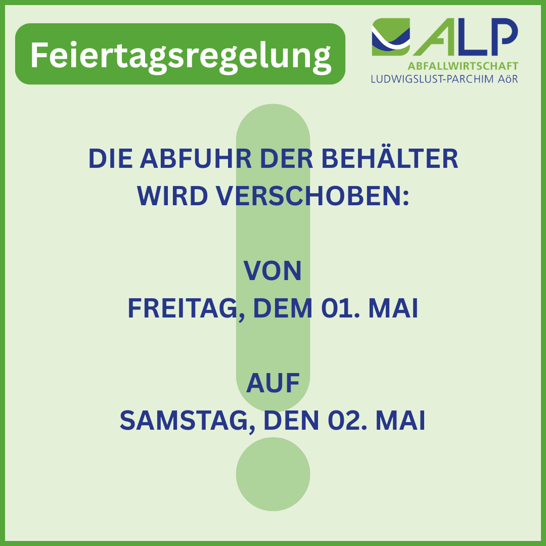Am Freitag, den 1. Mai finden keine Leerungen statt.