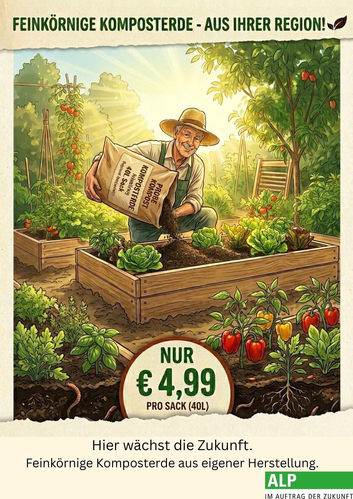 Ab sofort kann auf den 10 Wertstoffhöfen im Landkreis feinkörnige Komposterde in 40 Liter Säcken erworben werden.